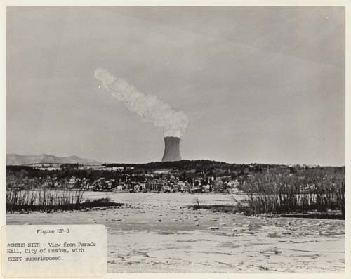 Image credit: A superimposed drawing of the proposed Greene County Nuclear Power Plant, Athens site, as seen from Parade Hill, city of Hudson. Courtesy of Harvey Flad