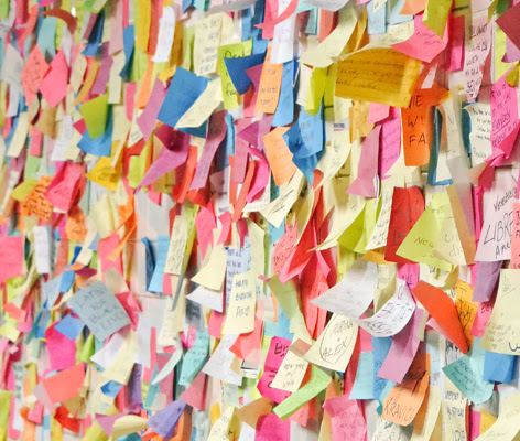 Through Inauguration Day, January 20, 2017, visitors to the New-York Historical Society can add their words to Messages for the President-Elect, a special installation on view in the Museum’s glass entryway on Central Park West. Inspired by the Subway Therapy project, the sticky notes posted at the Museum will become a part of New-York Historical’s permanent collection, along with the thousands of Subway Therapy notes recently collected from Manhattan’s Union Square subway station, following a partnership between artist Matthew “Levee” Chavez, New York Governor Andrew Cuomo, and the NYC Metropolitan Transit Authority to preserve reactions to the 2016 election.