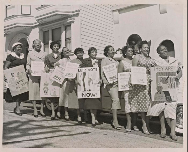 Women activists with signs for registration, 1956. Collection of the Smithsonian National Museum of African American History and Culture, Frances Albrier Collection. © Cox Studio