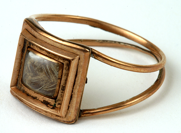 Unidentified maker. Mourning ring containing lock of Alexander Hamilton’s hair presented to Nathaniel Pendleton by Elizabeth Hamilton, 1805. Gold, hair. New-York Historical Society, Gift of Mr. B. Pendleton Rogers, 1961.5a