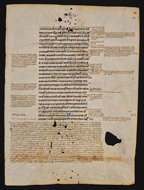 Another highlight are the annotations of Francesco Buonamici—who taught Galileo Galilei—that appear on a commentary on Aristotle’s Posterior Analytica. Buonamici’s annotations may provide a missing link between Aristotle’s physics and the emerging new science of the time. They also testify to the tenacity of Aristotle in the face of the empirical discoveries made later by Galileo that seemed to upend the Aristotelian universe. Aristotle had an overarching theory of the universe; Galileo only had a few empirical observations.