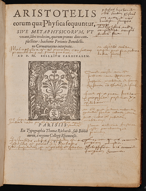 Aristotle. Eorum quae Physica sequuntur sive Metaphysicorum, ut vocant, in libri tredecim. Paris: Thomas Richardus, 1564. Courtesy of Martin J. Gross.