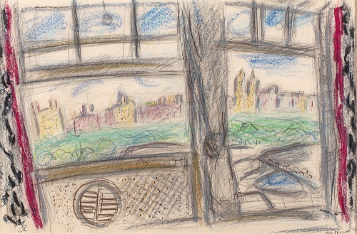 - Marc Chagall (1887–1985). View of Central Park from the Window (Vue de la fenêtre sur Central Park), 1958. Pastel, colored pencils, and black crayon over graphite on Japanese paper. Promised gift of Elie and Sarah Hirschfeld, Scenes of New York City. The Solomon R. Guggenheim Foundation / Art Resource, NY, © 2021 Artists Rights Society (ARS) New York / ADAGP, Paris
