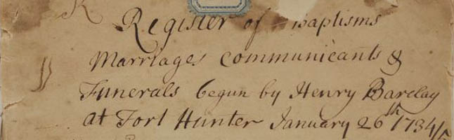 Register of baptisms, marriages, communicants & funerals begun by Henry Barclay at Fort Hunter, January 26, 1734/5